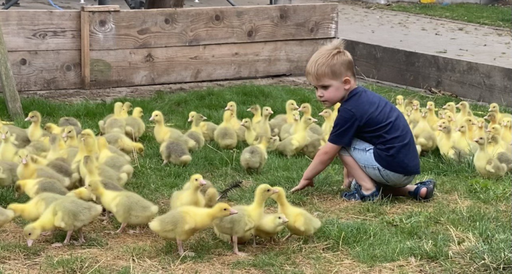Wir veredeln die empfindlichen, sehr betreuungsintensiven Eintagesgössel und bieten sie zum Verkauf als 3 Wochen alte Gössel.
